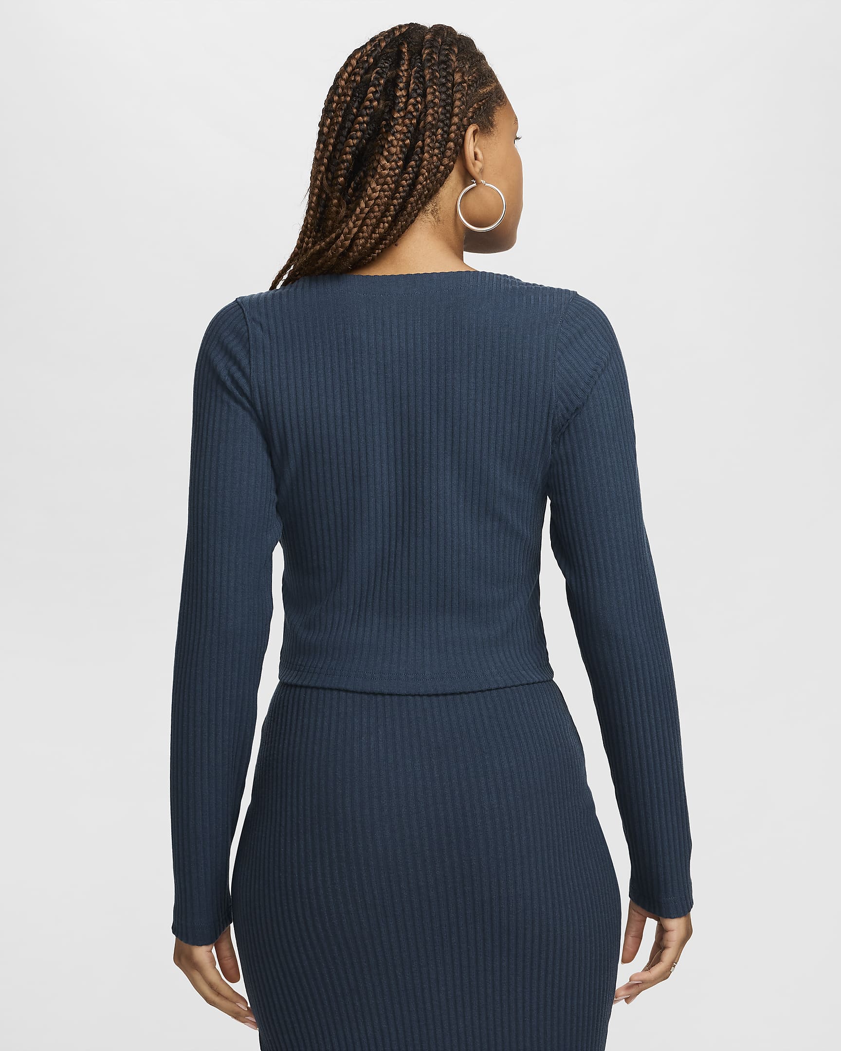 Stile, comfort e versatilità sono i punti di forza della nostra interpretazione dell'abbigliamento da casa di lusso. Una vestibilità attillata e un elastico in vita conferiscono a questa gonna a coste una vestibilità aderente, rendendola perfetta per quelle giornate tranquille in cui vuoi sentirti comoda ma allo stesso tempo in ordine. VantaggiLo spacco arriva fino al ginocchio, facilitando i movimenti.Il nostro jersey a coste è super morbido e opaco, esaltando il tuo look con una consistenza che puoi toccare.Dettagli del prodotto33% rayon/32% acrilico/31% cotone/4% spandexLogo Swoosh ricamatoMostrato: nero/neroStile: FQ1636-010Cardigan Full-Zip Nike Sportswear Chill Rib FN3682-010