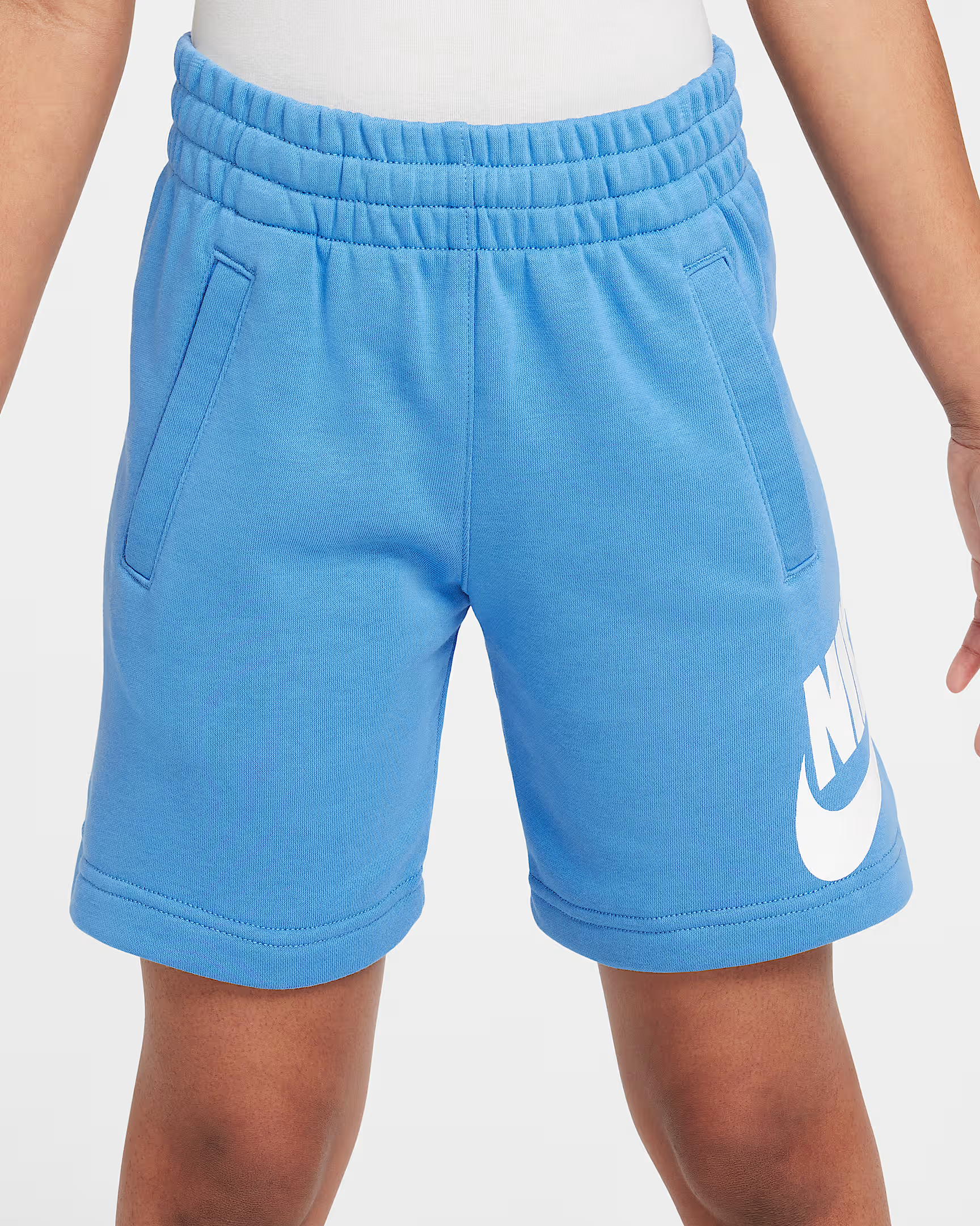 Oggi è il giorno giusto per celebrare il tuo amore per gli shorts. Un'opzione ideale quando il nostro pile spazzolato è troppo caldo, questi shorts sono perfetti per correre direttamente nella stagione calda. Il morbido tessuto French Terry offre una sensazione di leggerezza, come i tuoi classici jogger. Indossali e stringili con il cordino interno per una vestibilità perfetta su cui puoi contare per non fermarti mai. VantaggiAbbiamo ampliato la nostra gamma di taglie concentrandoci sulla vestibilità, non sul genere, per permettere a ogni bambino di giocare a modo suo.Le tasche angolate ti permettono di riporre facilmente i tuoi oggetti e tornare a giocare.Stringi l'elastico in vita al volo con il cordino ad allacciatura rapida.Dettagli del prodottoCorpo: 80% cotone/20% poliestere. Tasche: 100% cotone.Logo Futura stampatoLavabile in lavatriceImportatoColore mostrato: Blue Beyond/BiancoModello: FD2997-489Shorts French Terry Nike Sportswear Club FD2997-489