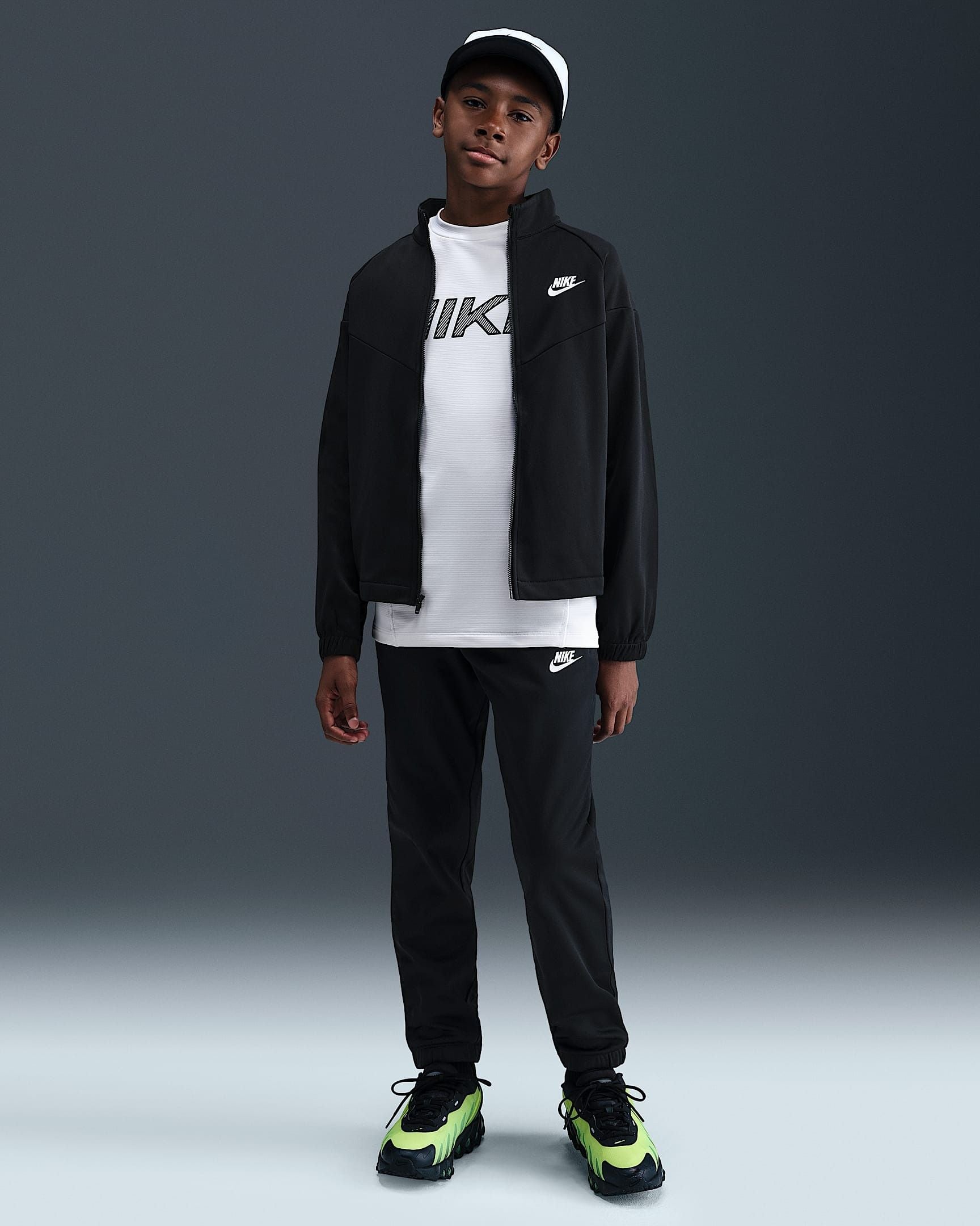 La tecnologia Nike Dri-FIT allontana il sudore dalla pelle per una più rapida evaporazione, aiutandoti a rimanere asciutto e comodo Ulteriori dettagliPolsini elasticiTasche laterali a scomparsaLe tasche offrono un rapido spazio per chiavi, telefono e mani fredde.Cintura elasticaPosizionamento della cerniera - AnterioreCerniera completa100% poliestereTUTA COMPLETA DRI-FIT JUNIOR NIKE CLUB HQ9315-010